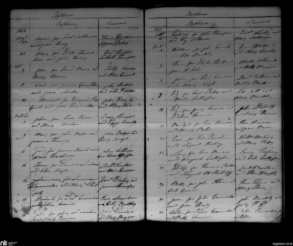 Ballyclough; County of Cork; Diocese of Cloyne. Baptisms, Aug. 1823 to Nov. 1823