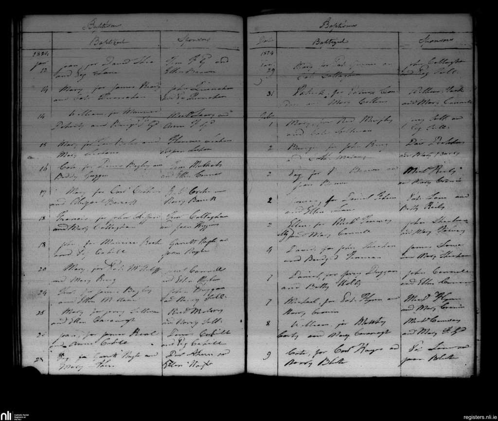 Ballyclough; County of Cork; Diocese of Cloyne. Baptisms, Jan. 1824 to Feb. 1824
