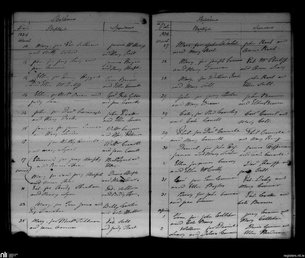Ballyclough; County of Cork; Diocese of Cloyne. Baptisms, Mar. 1824 to Apr. 1824