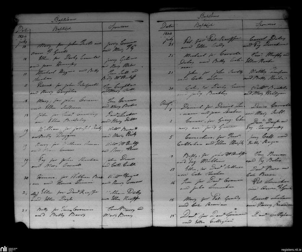 Ballyclough; County of Cork; Diocese of Cloyne. Baptisms, July 1824 to Aug. 1824