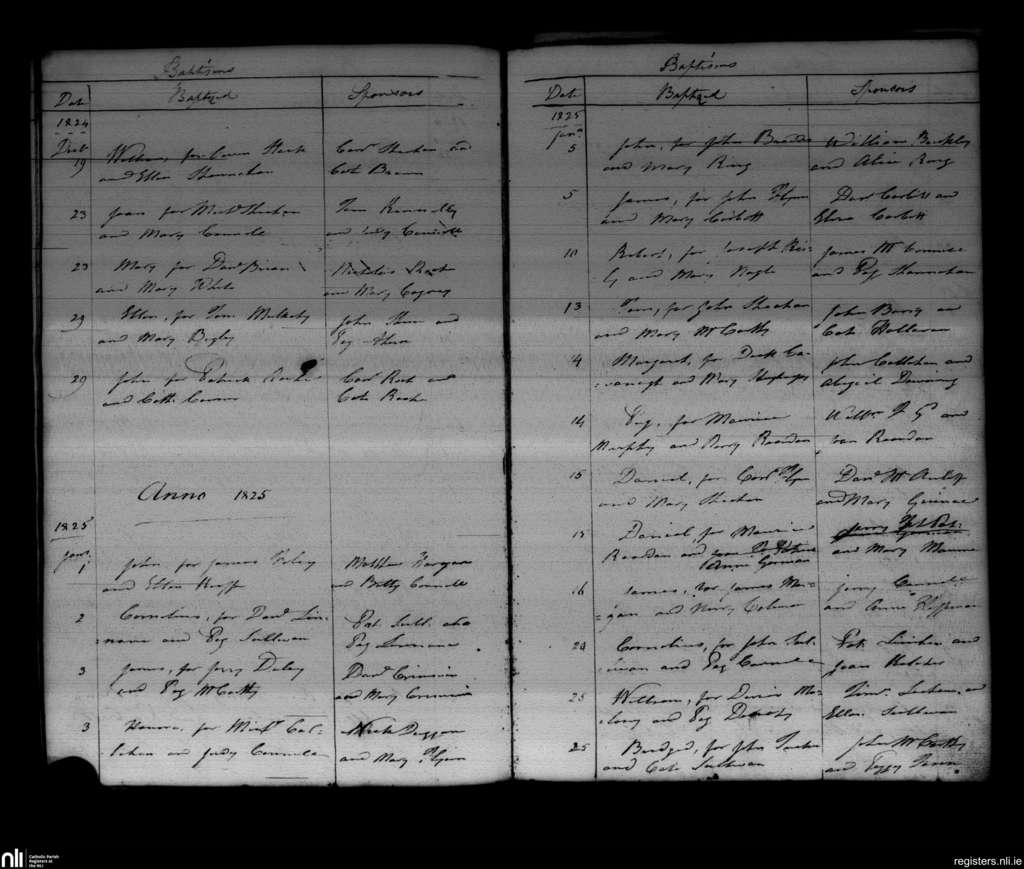 Ballyclough; County of Cork; Diocese of Cloyne. Baptisms, Dec. 1824 to Jan. 1825