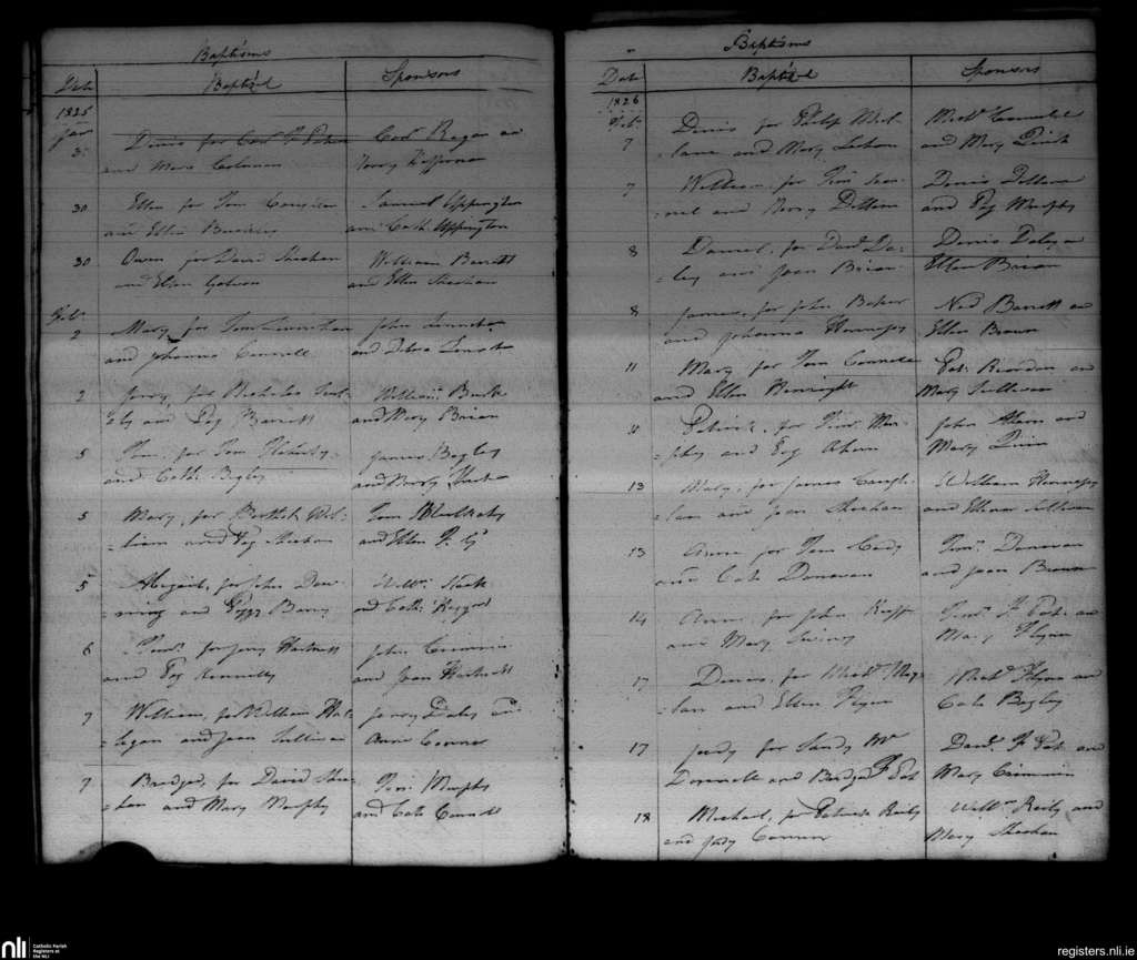 Ballyclough; County of Cork; Diocese of Cloyne. Baptisms, Jan. 1825 to Feb. 1825
