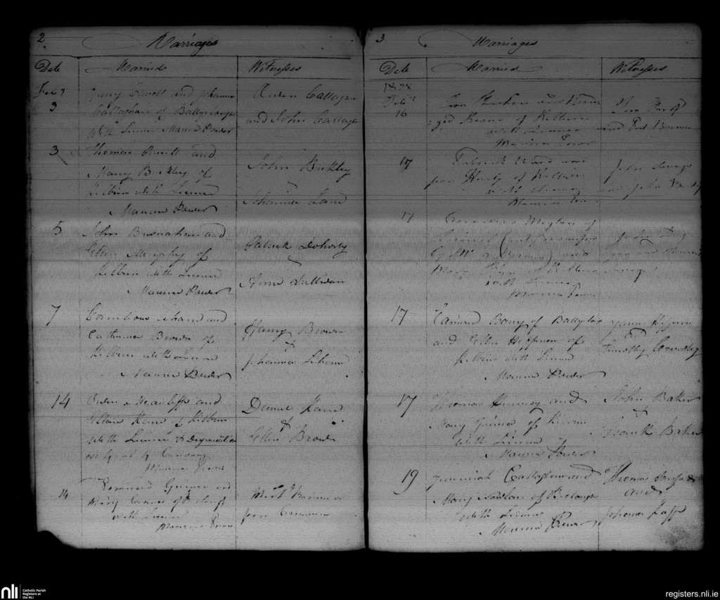 Ballyclough; County of Cork; Diocese of Cloyne. Marriages, Feb. 1828