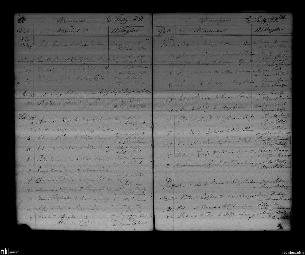 Ballyclough; County of Cork; Diocese of Cloyne. Marriages, Oct. 1830 to May 1831