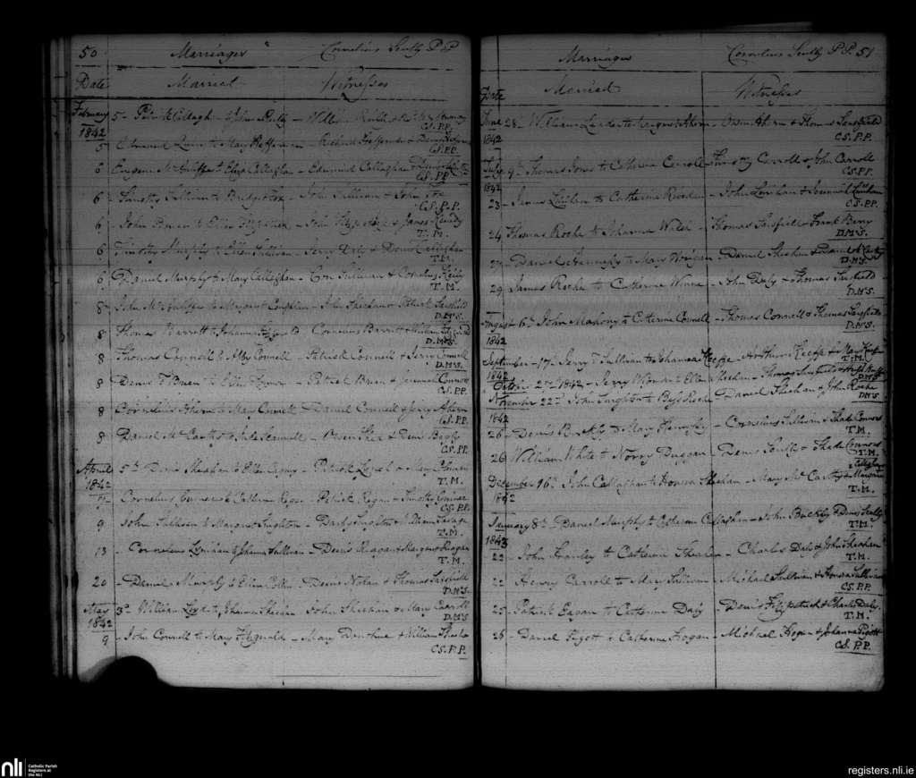 Ballyclough; County of Cork; Diocese of Cloyne. Marriages, Feb. 1842 to Jan. 1843