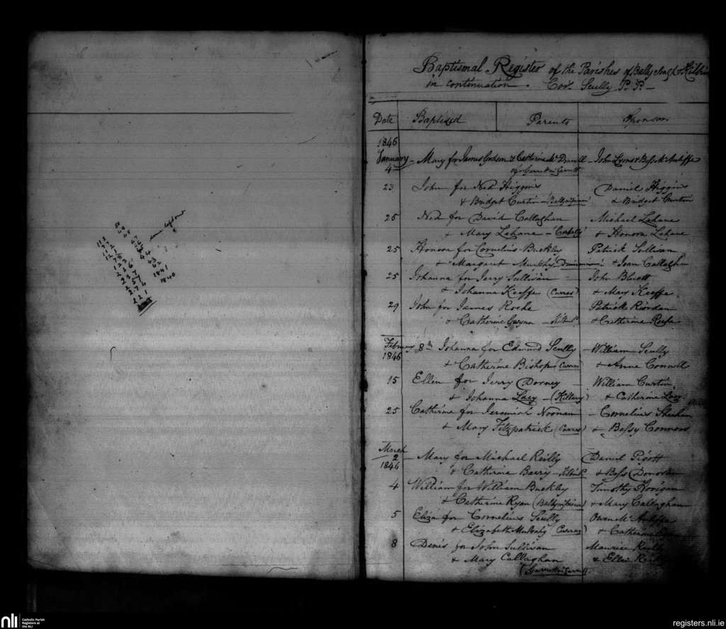 Ballyclough; County of Cork; Diocese of Cloyne. Baptisms, Jan. 1846 to Mar. 1846