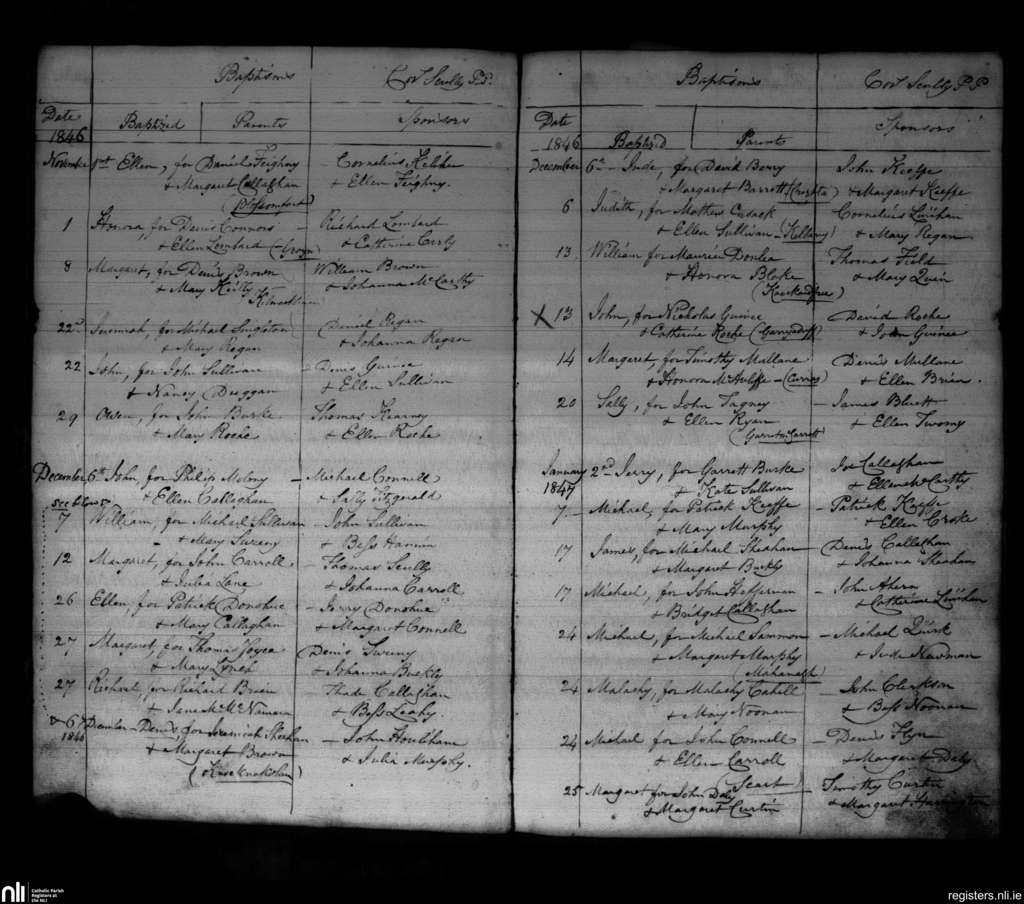 Ballyclough; County of Cork; Diocese of Cloyne. Baptisms, Nov. 1846 to Jan. 1847