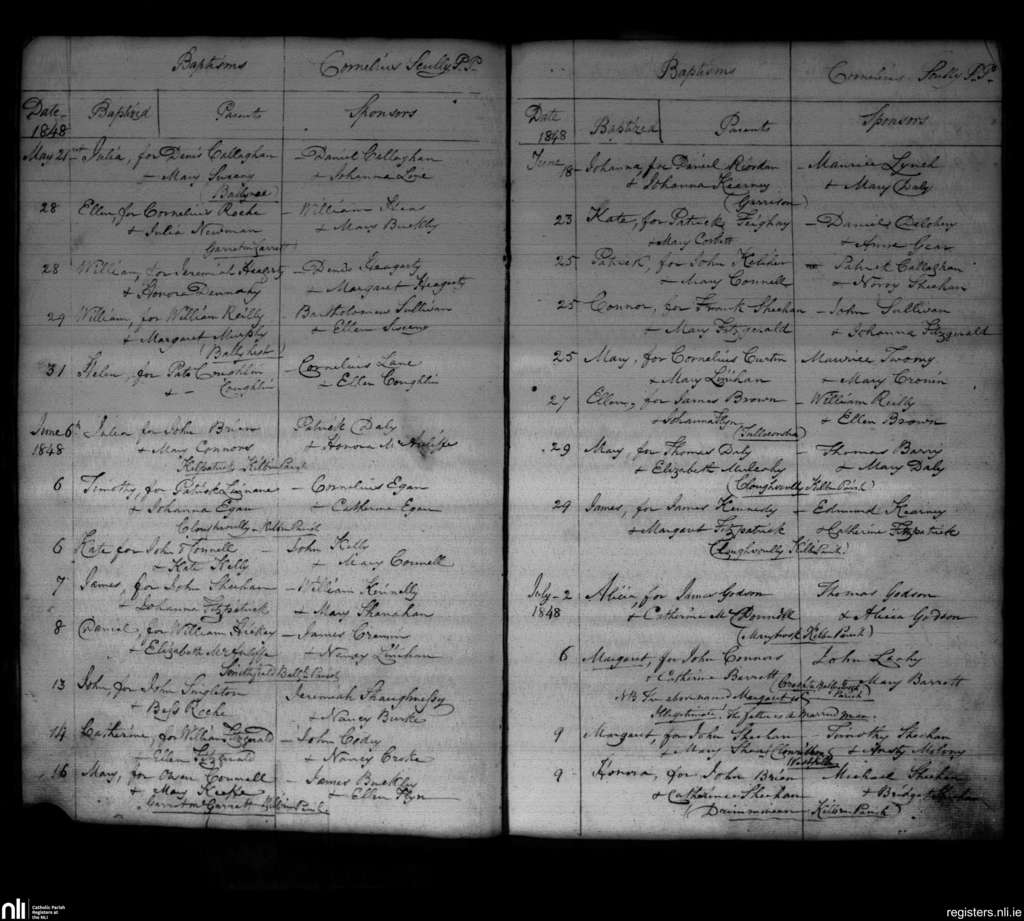 Ballyclough; County of Cork; Diocese of Cloyne. Baptisms, May 1848 to July 1848