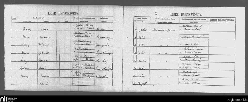Ballysodare and Kilvarnet; County of Sligo; Diocese of Achonry. Baptisms, July 1842 to Aug. 1842