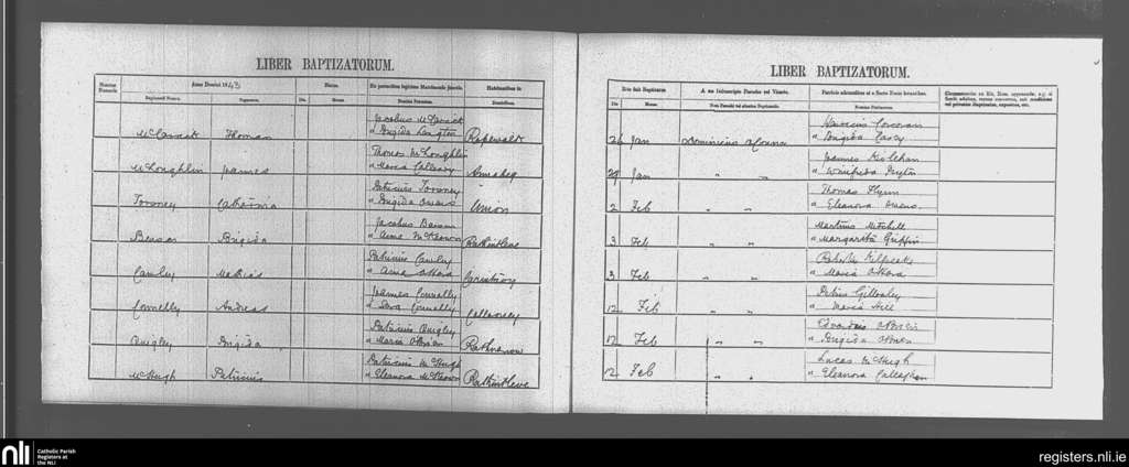 Ballysodare and Kilvarnet; County of Sligo; Diocese of Achonry. Baptisms, Jan. 1843 to Feb. 1843