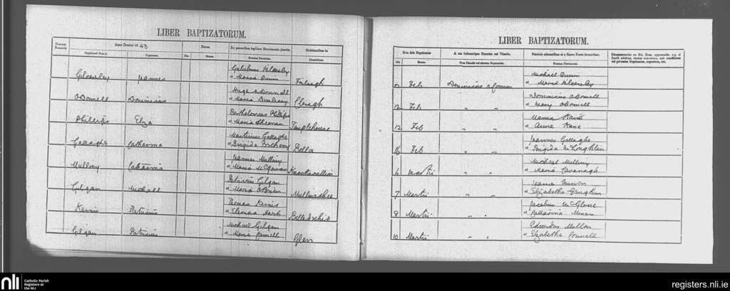 Ballysodare and Kilvarnet; County of Sligo; Diocese of Achonry. Baptisms, Feb. 1843 to Mar. 1843