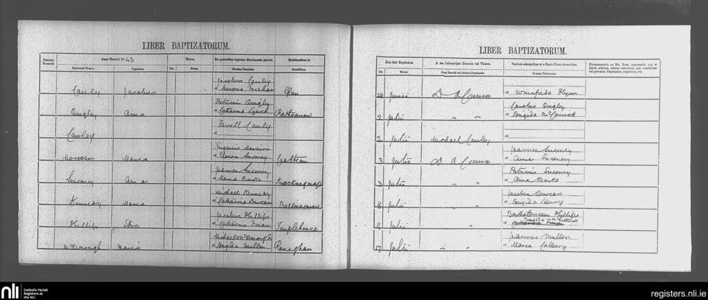 Ballysodare and Kilvarnet; County of Sligo; Diocese of Achonry. Baptisms, June 1843 to July 1843