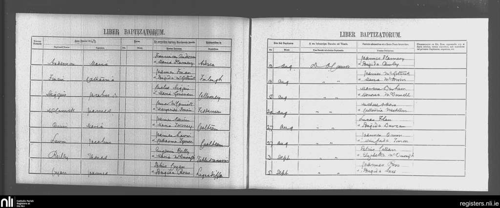 Ballysodare and Kilvarnet; County of Sligo; Diocese of Achonry. Baptisms, Aug. 1843 to Sep. 1843