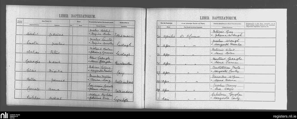 Ballysodare and Kilvarnet; County of Sligo; Diocese of Achonry. Baptisms, Apr. 1844 to May 1844