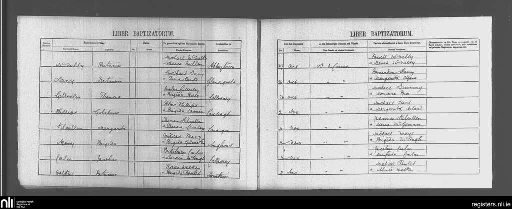 Ballysodare and Kilvarnet; County of Sligo; Diocese of Achonry. Baptisms, Oct. 1844 to Nov. 1844