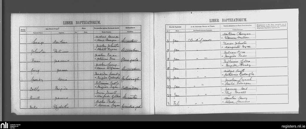 Ballysodare and Kilvarnet; County of Sligo; Diocese of Achonry. Baptisms, Jan. 1845 to Feb. 1845