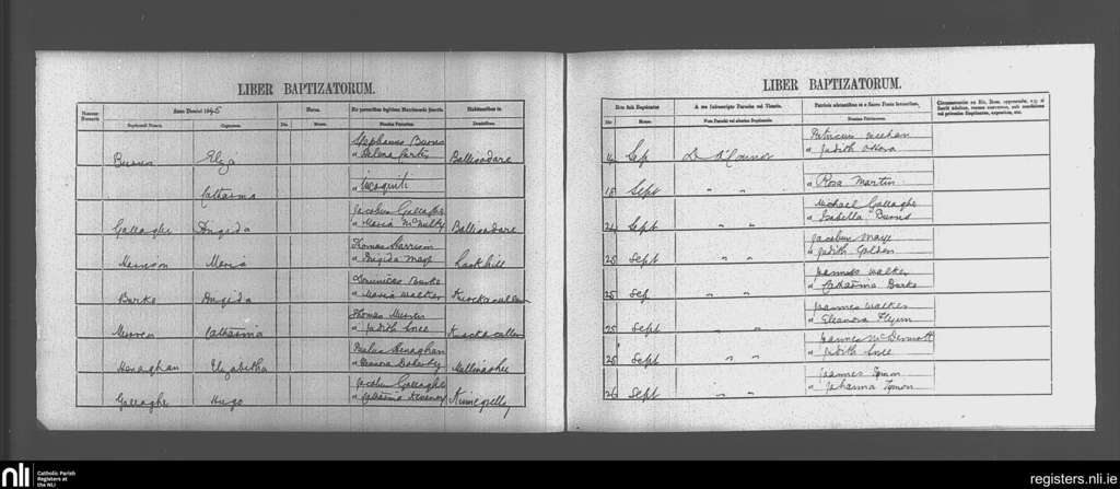 Ballysodare and Kilvarnet; County of Sligo; Diocese of Achonry. Baptisms, Sep. 1845