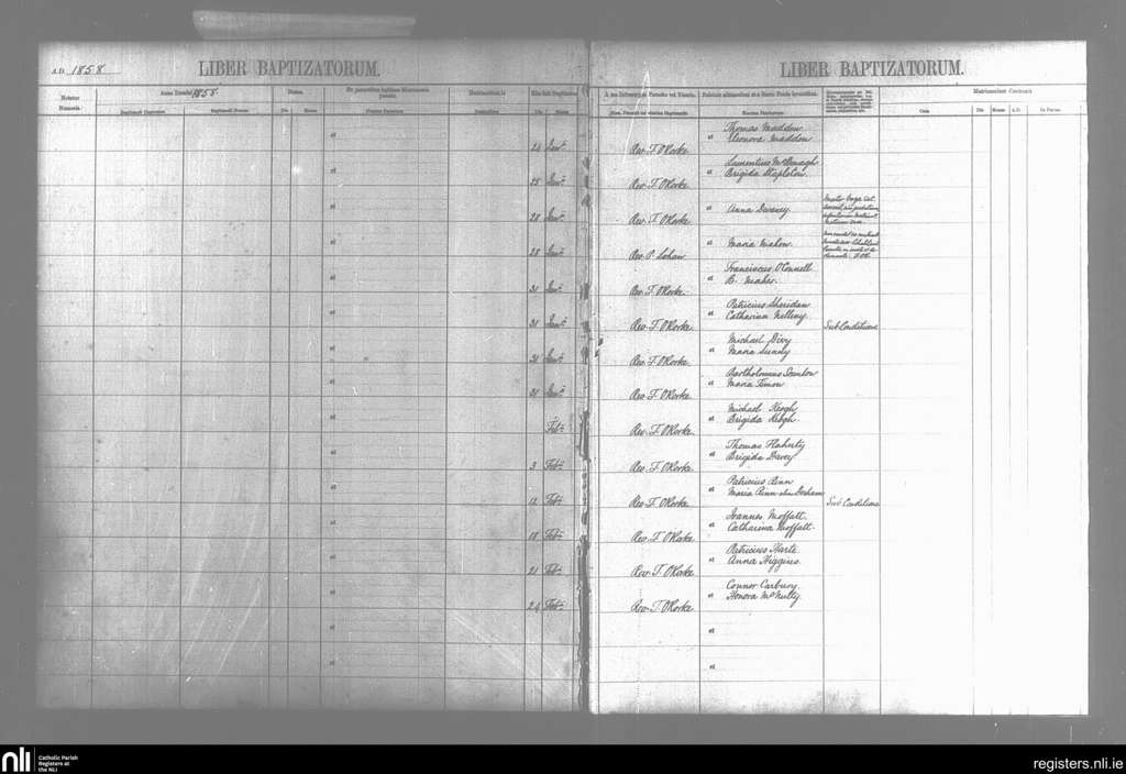 Ballysodare and Kilvarnet; County of Sligo; Diocese of Achonry. Baptisms, Jan. 1858 to Feb. 1858