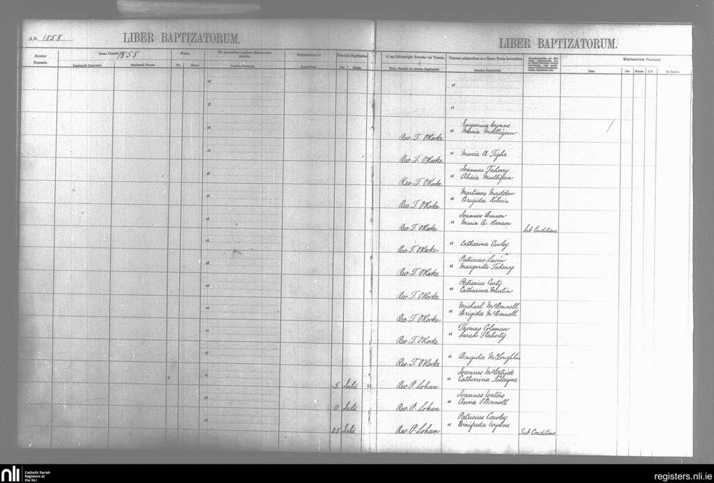 Ballysodare and Kilvarnet; County of Sligo; Diocese of Achonry. Baptisms, July 1858