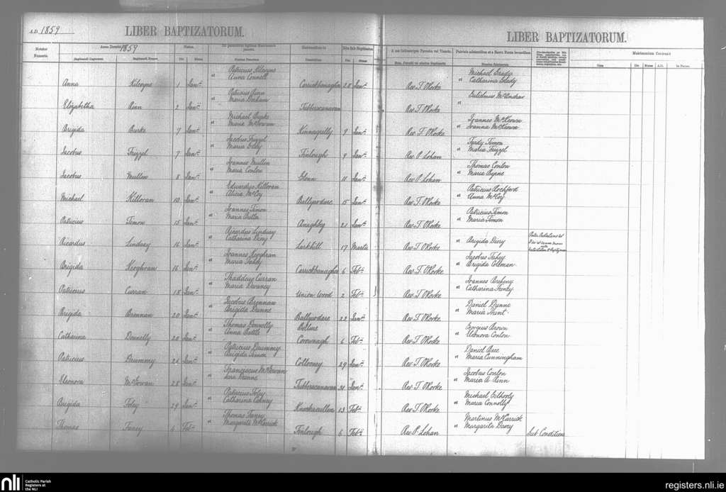 Ballysodare and Kilvarnet; County of Sligo; Diocese of Achonry. Baptisms, Jan. 1859 to Mar. 1859