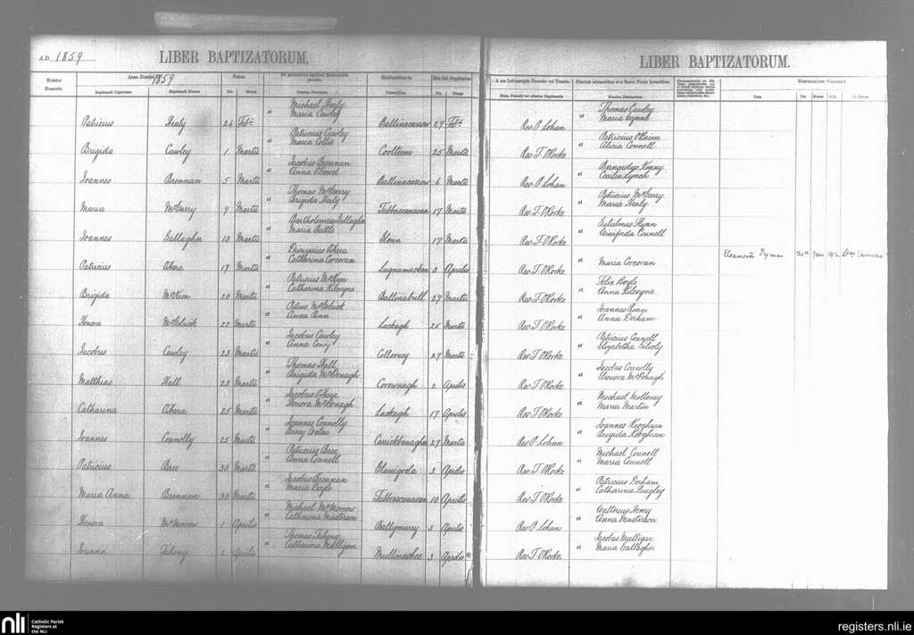 Ballysodare and Kilvarnet; County of Sligo; Diocese of Achonry. Baptisms, Feb. 1859 to Apr. 1859