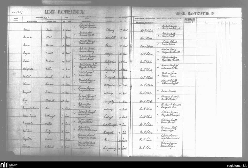 Ballysodare and Kilvarnet; County of Sligo; Diocese of Achonry. Baptisms, May 1859 to July 1859