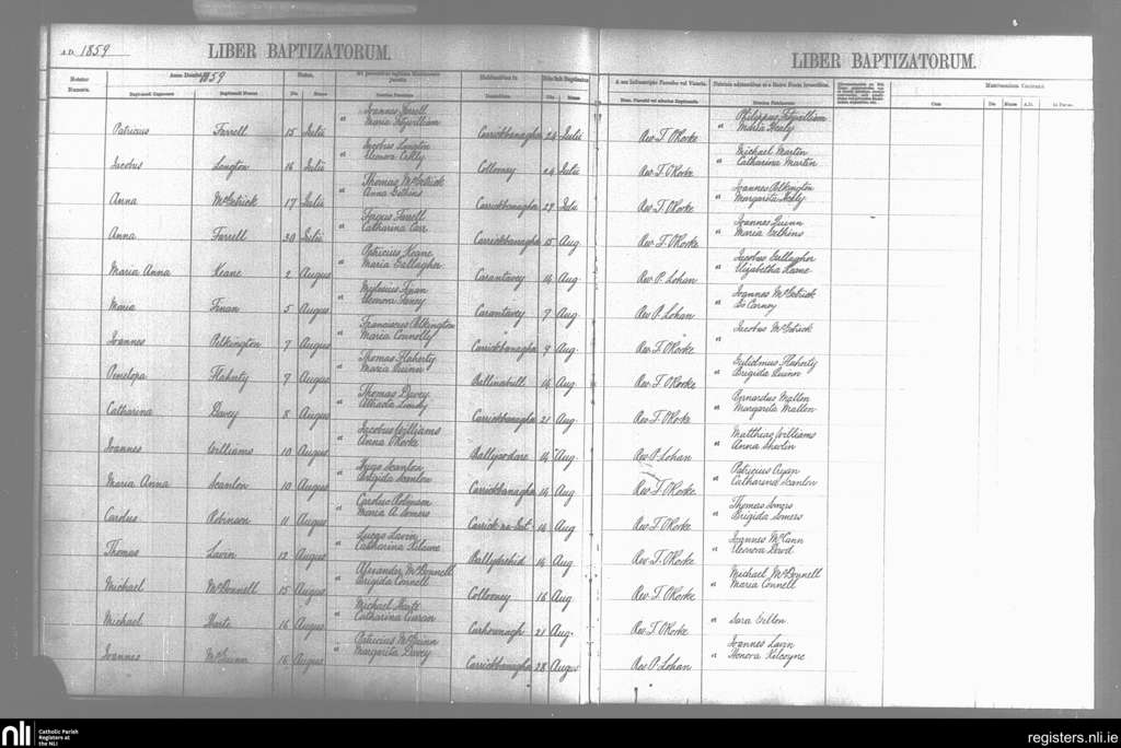 Ballysodare and Kilvarnet; County of Sligo; Diocese of Achonry. Baptisms, July 1859 to Aug. 1859