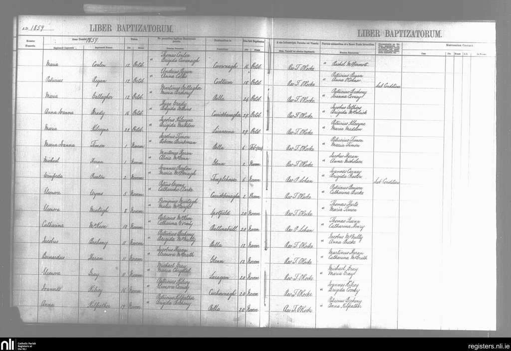 Ballysodare and Kilvarnet; County of Sligo; Diocese of Achonry. Baptisms, Oct. 1859 to Feb. 1860