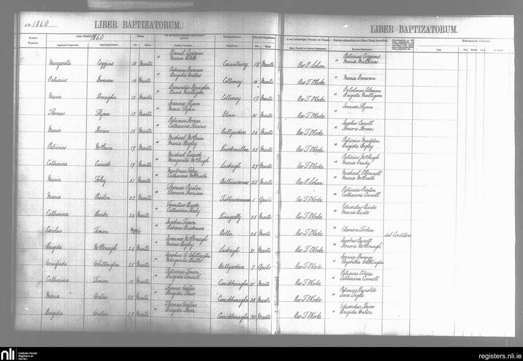 Ballysodare and Kilvarnet; County of Sligo; Diocese of Achonry. Baptisms, Mar. 1860 to Apr. 1860