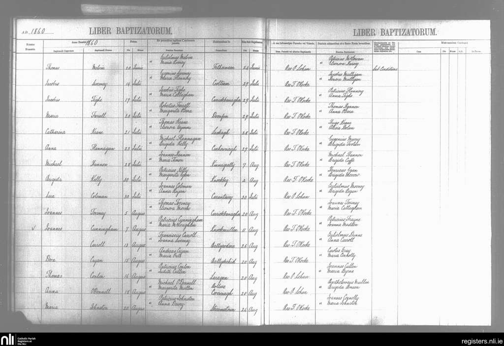 Ballysodare and Kilvarnet; County of Sligo; Diocese of Achonry. Baptisms, June 1860 to Aug. 1860