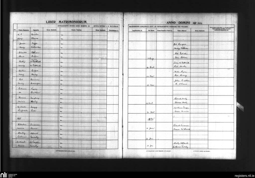 Emlefad and Kilmorgan; County of Sligo; Diocese of Achonry. Marriages, Aug. 1824 to Jan. 1825