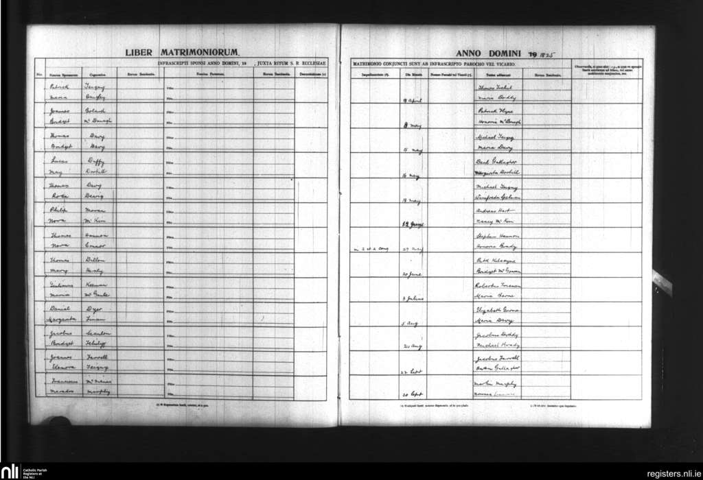 Emlefad and Kilmorgan; County of Sligo; Diocese of Achonry. Marriages, Apr. 1825 to Sep. 1825