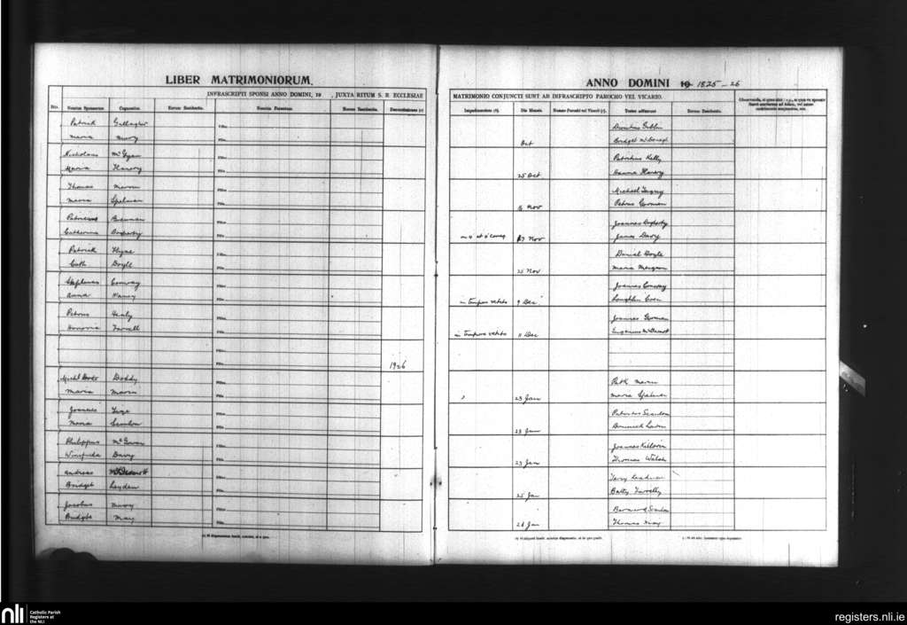 Emlefad and Kilmorgan; County of Sligo; Diocese of Achonry. Marriages, Oct. 1825 to Jan. 1826