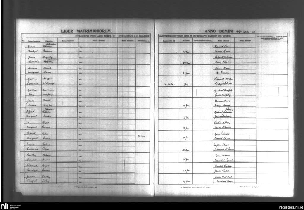 Emlefad and Kilmorgan; County of Sligo; Diocese of Achonry. Marriages, Nov. 1834 to Jan. 1835