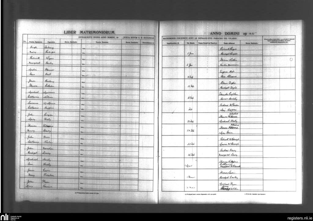 Emlefad and Kilmorgan; County of Sligo; Diocese of Achonry. Marriages, Jan. 1835 to Mar. 1835