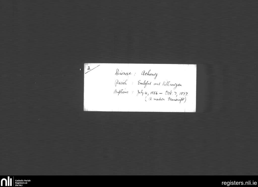 Emlefad and Kilmorgan; County of Sligo; Diocese of Achonry. Baptisms