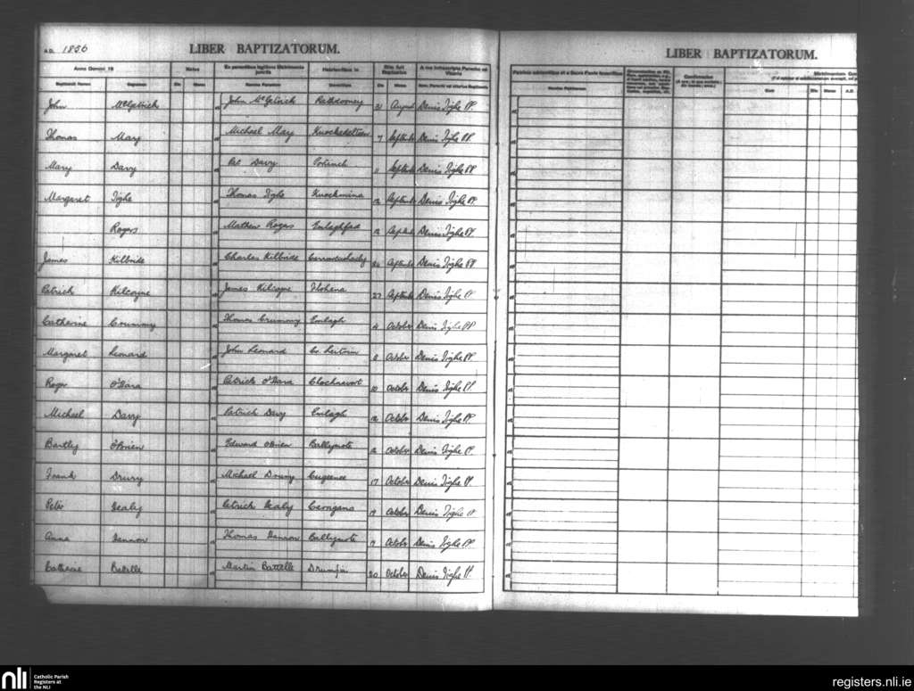 Emlefad and Kilmorgan; County of Sligo; Diocese of Achonry. Baptisms, Aug. 1856 to Oct. 1856