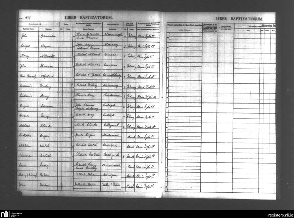 Emlefad and Kilmorgan; County of Sligo; Diocese of Achonry. Baptisms, Feb. 1857 to Mar. 1857