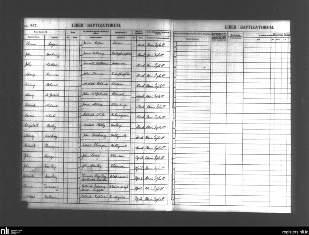 Emlefad and Kilmorgan; County of Sligo; Diocese of Achonry. Baptisms, Mar. 1857 to Apr. 1857