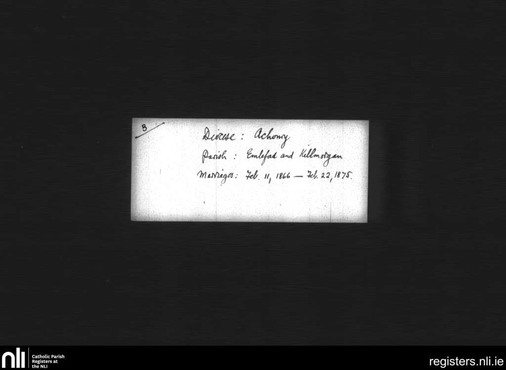 Emlefad and Kilmorgan; County of Sligo; Diocese of Achonry. Marriages