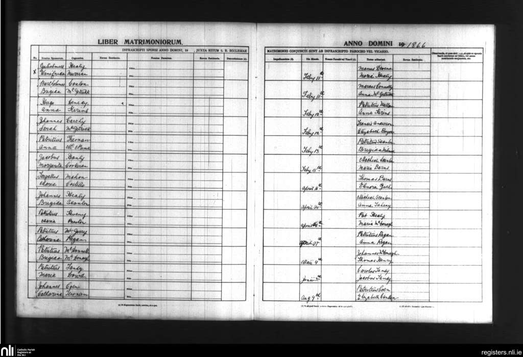 Emlefad and Kilmorgan; County of Sligo; Diocese of Achonry. Marriages, Feb. 1866 to Aug. 1866