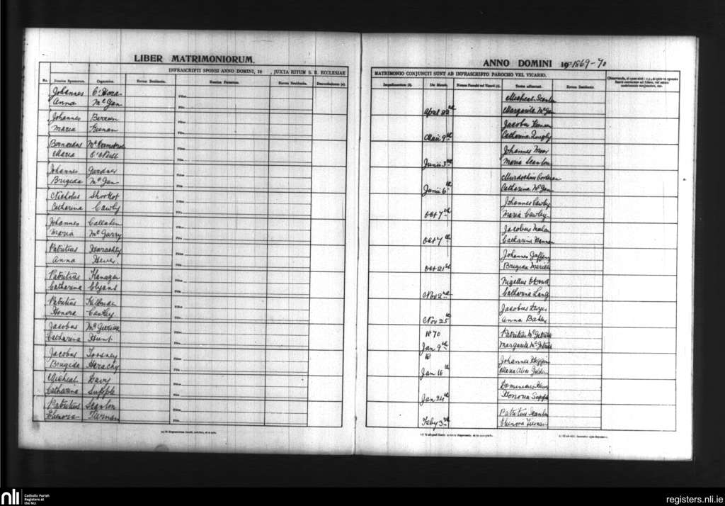 Emlefad and Kilmorgan; County of Sligo; Diocese of Achonry. Marriages, Apr. 1869 to Feb. 1870