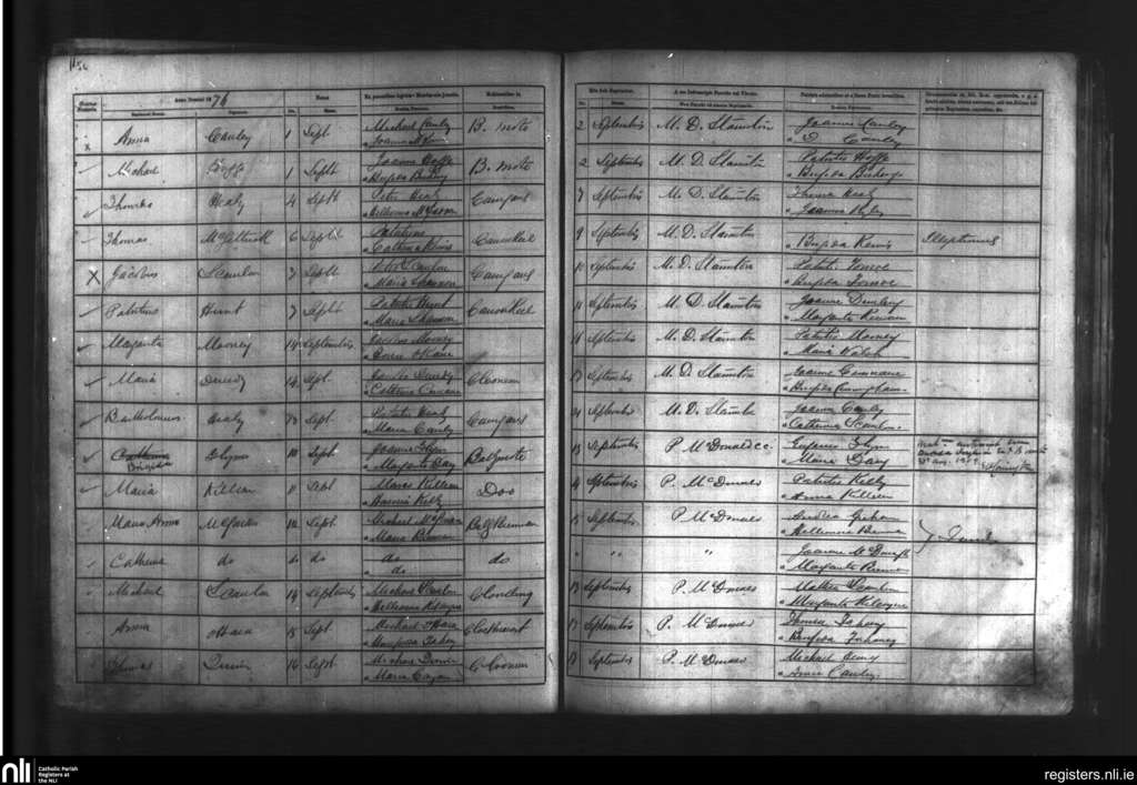 Emlefad and Kilmorgan; County of Sligo; Diocese of Achonry. Baptisms, Sep. 1876