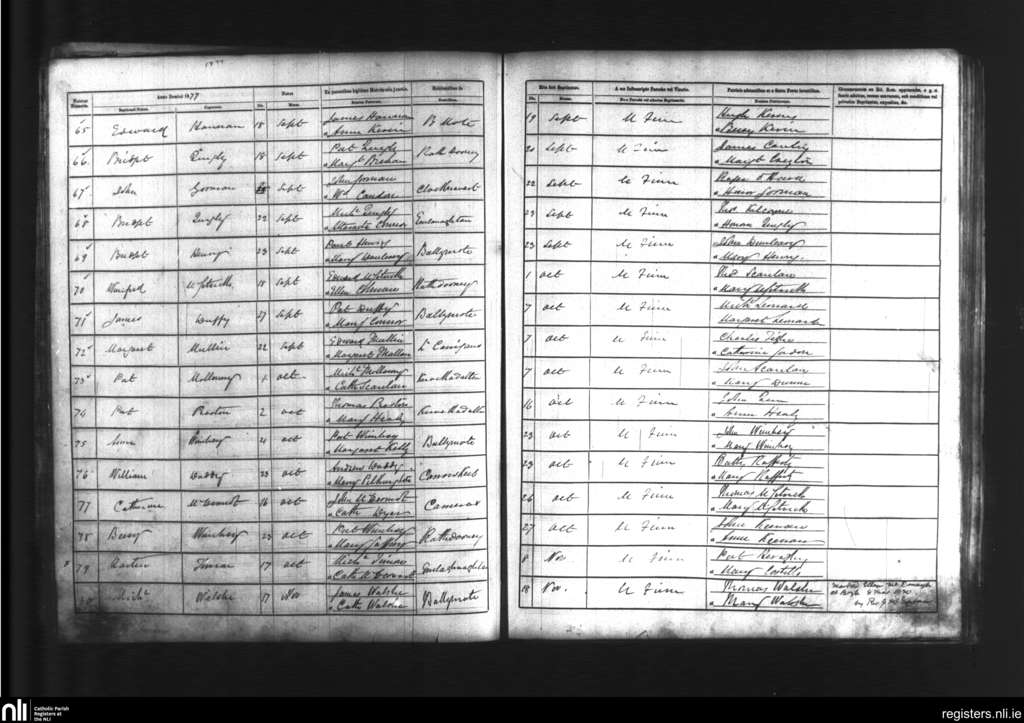 Emlefad and Kilmorgan; County of Sligo; Diocese of Achonry. Baptisms, Sep. 1877 to Nov. 1877