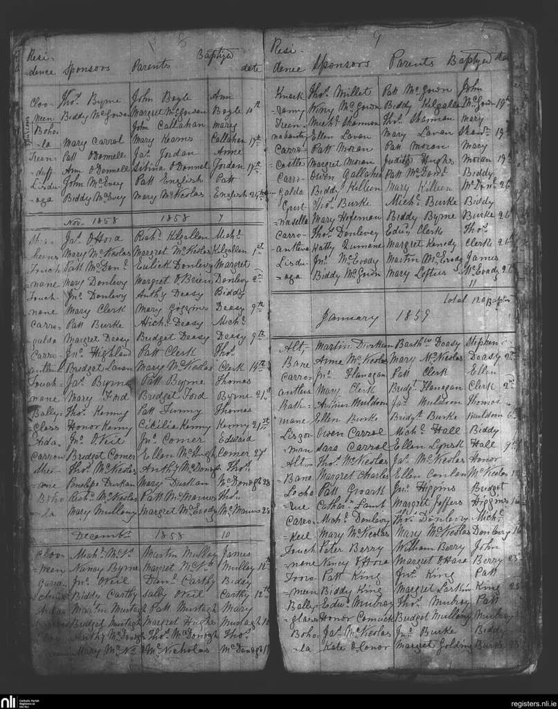 Bohola; County of Mayo; Diocese of Achonry. Baptisms, Oct. 1858 to Jan. 1859
