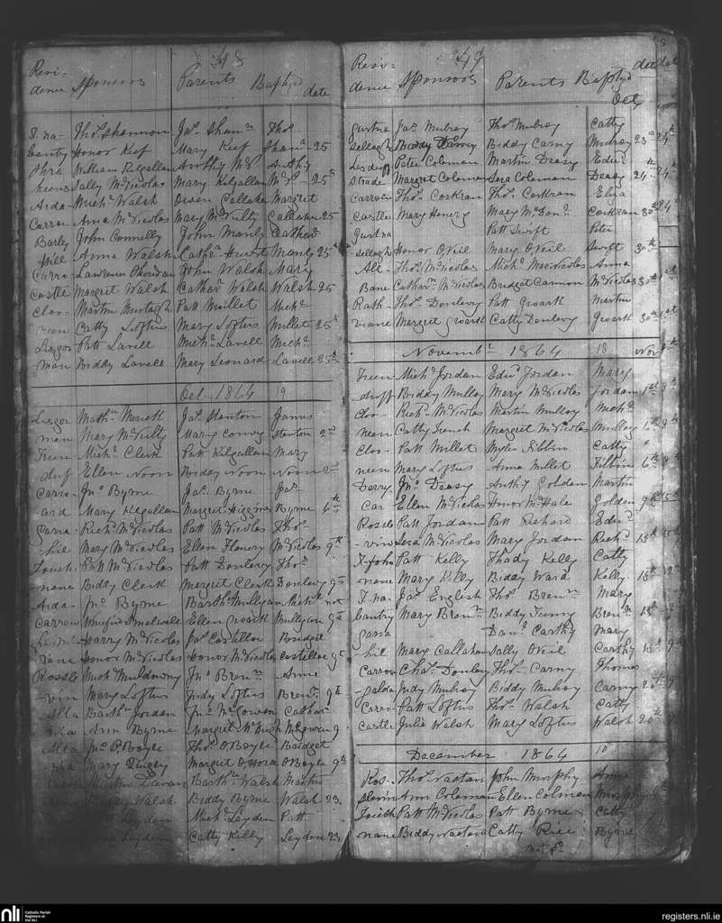 Bohola; County of Mayo; Diocese of Achonry. Baptisms, Sep. 1864 to Dec. 1864