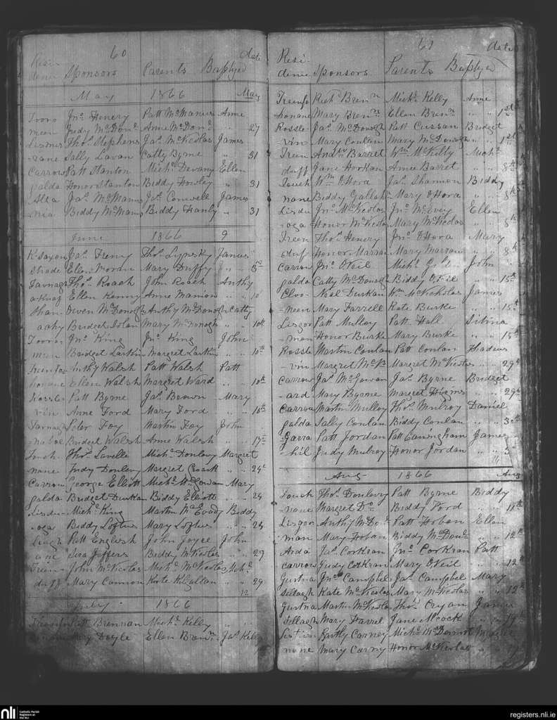 Bohola; County of Mayo; Diocese of Achonry. Baptisms, May 1866 to Aug. 1866