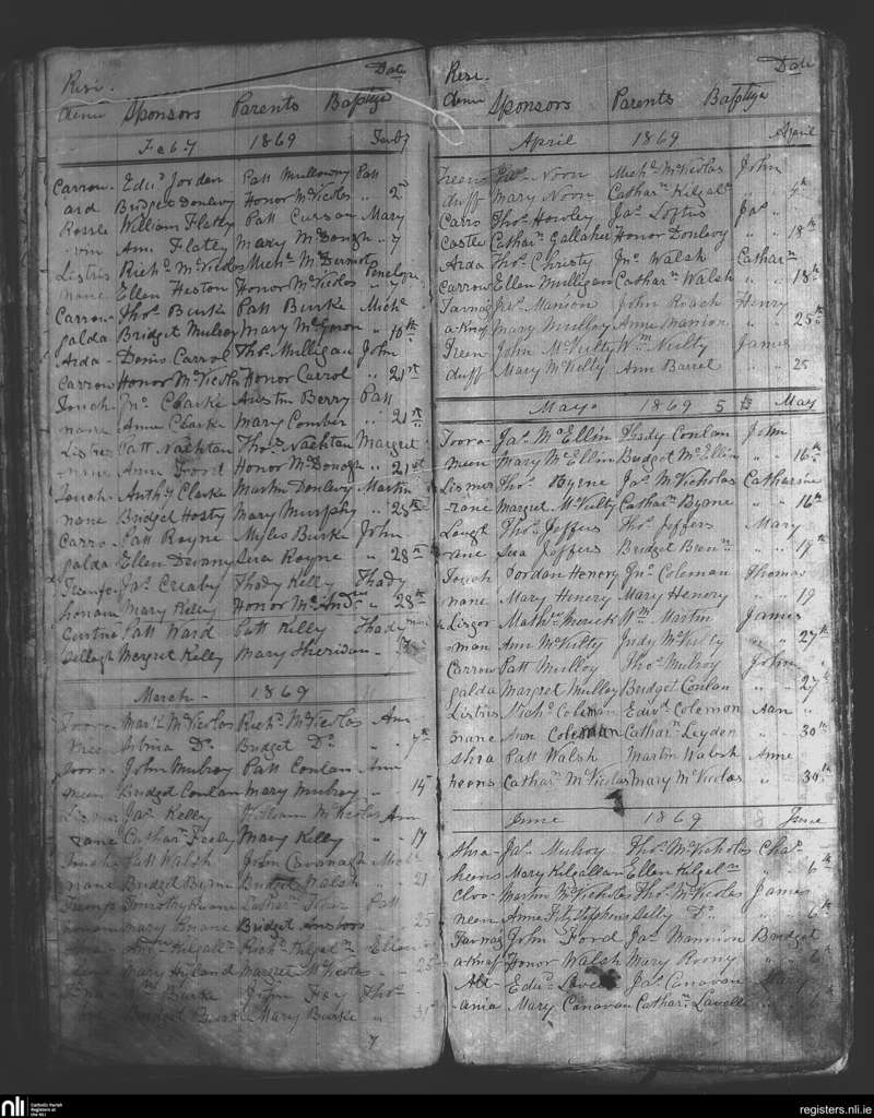 Bohola; County of Mayo; Diocese of Achonry. Baptisms, Feb. 1869 to June 1869