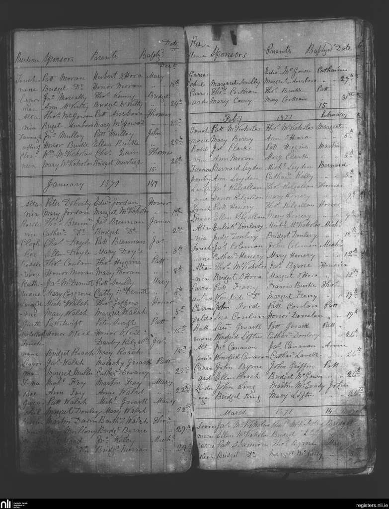 Bohola; County of Mayo; Diocese of Achonry. Baptisms, Dec. 1870 to Mar. 1871