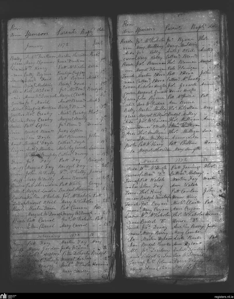 Bohola; County of Mayo; Diocese of Achonry. Baptisms, Jan. 1872 to Mar. 1872